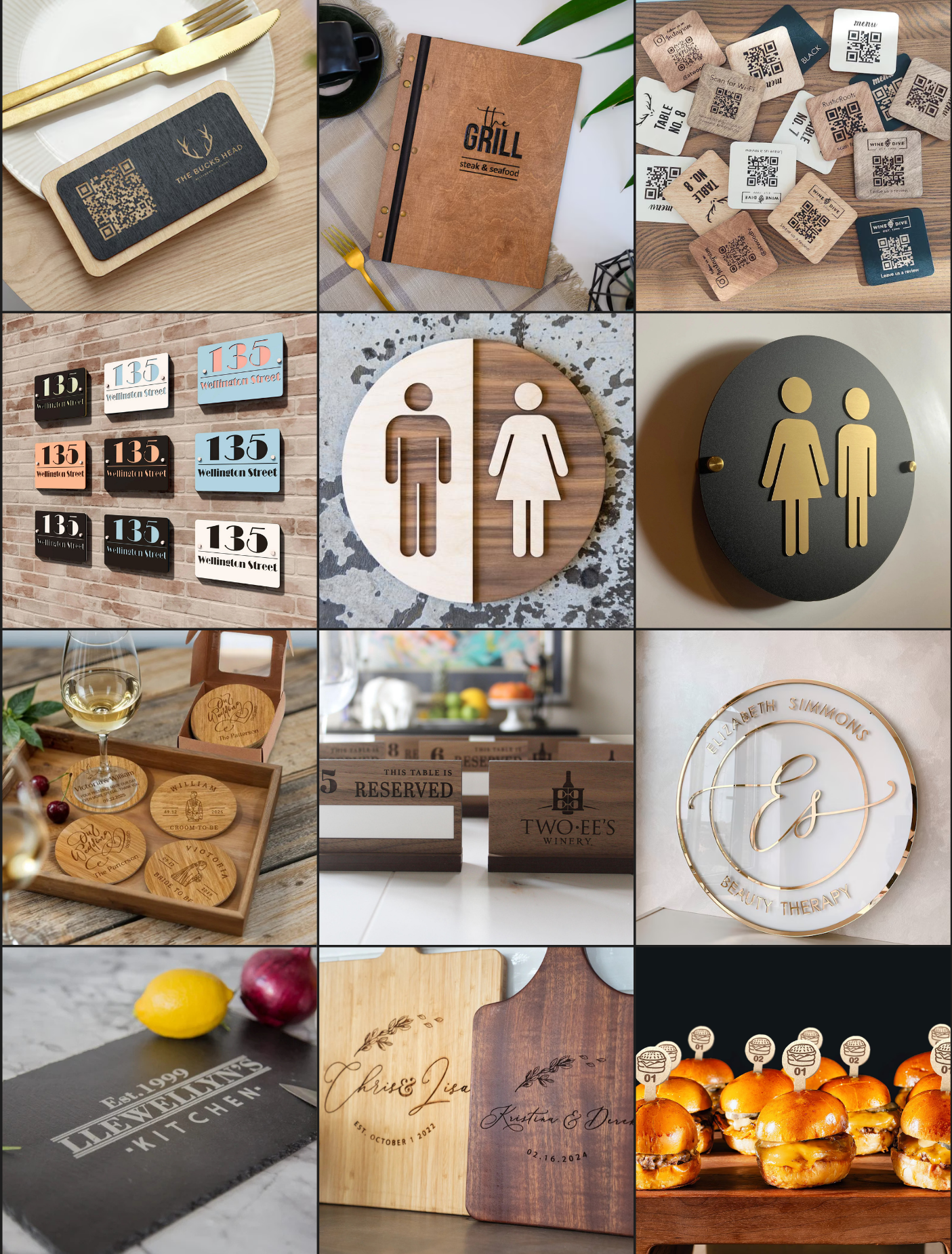 Our Restaurant & Bar Collection transforms your venue with bespoke engraved pieces designed to impress every guest. From personalised serving boards to engraved menus and signage, each creation reflects your brand’s quality and attention to detail, helping your space stand out in every setting.