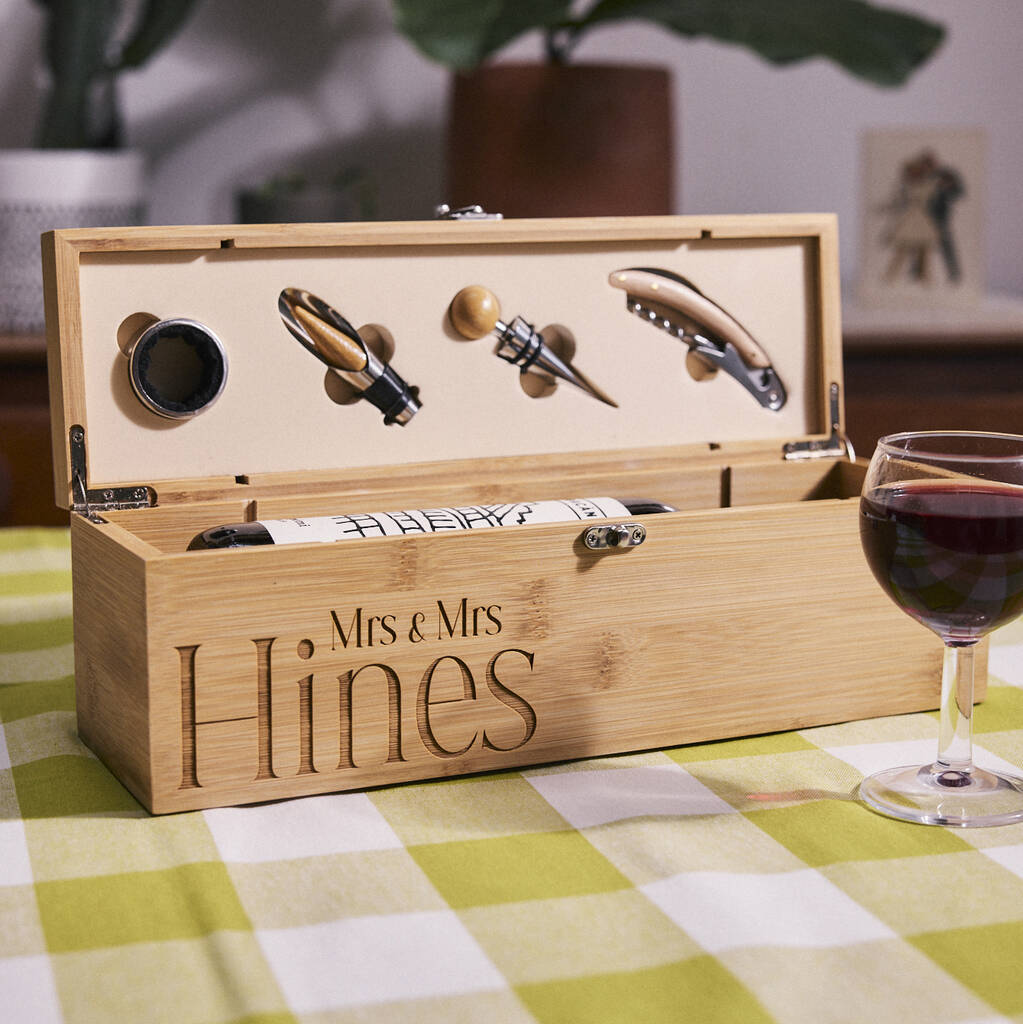 Sett tal-inbid sofistikat ippreżentat f'kaxxa tar-rigali tal-bambu bi spazju għal flixkun wieħed tal-inbid (mhux inkluż). Jinkludi kullar tal-flixkun, pourer, tapp, u corkscrew. Varjazzjonijiet naturali tal-bambu jżidu mess uniku—perfett għal dilettanti tal-inbid konxji mill-ambjent.